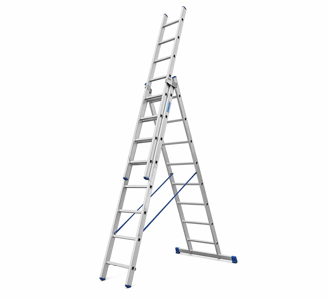 Model 3×11 stopni zapewnia dużą wysokość roboczą, co pozwala na wygodne wykonywanie prac takich jak remonty, prace elewacyjne, montaż instalacji czy pielęgnacja ogrodu. Dzięki możliwości konfiguracji w różnych ustawieniach, drabina dopasowuje się do aktualnych potrzeb użytkownika i warunków pracy.